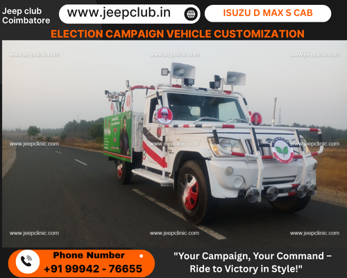 JC Auto Motive & Jeep Club TN Coimbatore already 15+ years-ஆக political jeeps, SUVs, trucks, மற்றும் buses build பண்ணிட்டு இருக்கோம். நம்ம Eicher & Leyland bus conversions already பல parties trust பண்ணி use பண்ணிருக்காங்க – durability, finish, மற்றும் campaign impactக்கு top choice.