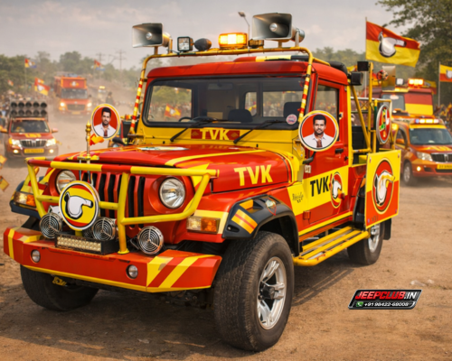 JC Customization – பீளமேடு, கோயம்புத்தூர் பகுதியில் அமைந்துள்ள எங்கள் நிறுவனம், Mahindra Thar, Bolero, Bolero Camper மற்றும் Jeep போன்ற வாகனங்களை முழுமையாக தேர்தல் பிரச்சார வாகனங்களாக மாற்றுகிறது.