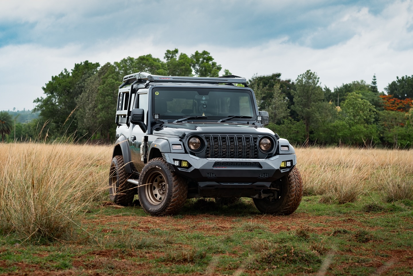 For exterior upgrades, Thar owners can choose metal bumpers with winch mounts, rear bumpers with tyre carriers, bonnet scoops, and side rock sliders. Alloy wheels with off-road tyres and wide fender flares provide both performance and rugged looks. We offer multiple hardtop options, including FRP safari designs and metal tops with sunroof cutouts, along with roof racks for overlanding use. Lighting upgrades such as LED headlamps, fog lamps, DRLs, tail lamps, and light bars are available for better visibility on trails.