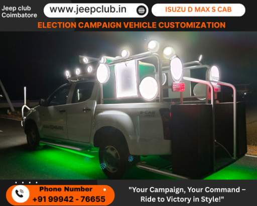 Election season in Tamil Nadu is more than speeches and banners — it’s about visibility, mobility, and reaching every corner of the state. Whether you are from BJP, DMK, INC, AAP, or standing independently, your campaign needs a vehicle that speaks before you do. At JC Customization Coimbatore, we specialize in converting Thar, Bolero, Force Traveller, and pickup trucks into fully-loaded campaign vehicles tailored for your ground strategy. From Tata and Mahindra to Isuzu, Toyota, Eicher, and Leyland, we modify all major Indian campaign vehicles with the tools you need to connect with your voters — loudspeakers, LED displays, rally