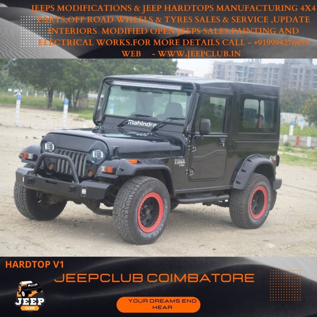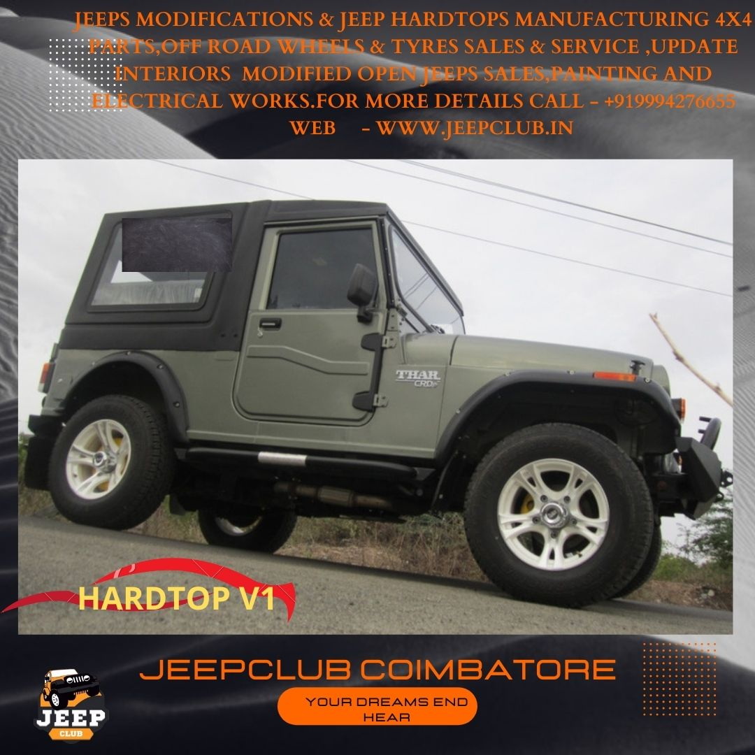 Mahindra Thar FRP hardtop, ISO certified Thar hardtop, Thar hardtop Coimbatore, Jeep Club hardtop, Thar hardtop upgrade, Thar FRP roof, Thar weatherproof roof, Mahindra Thar closed roof, Thar fiber top, Thar durable hardtop, Thar roof replacement, Thar fixed hardtop, Jeep Club Coimbatore, Mahindra Thar 4x4 roof, Thar customization Tamil Nadu, Thar aftermarket roof, Thar rainproof hardtop, offroad Thar hardtop, Thar FRP installation, Thar secure roof upgrade