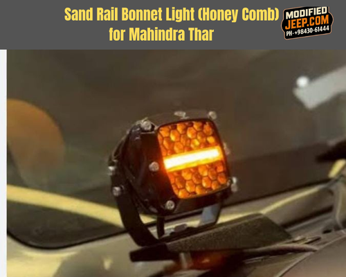 Elevate your Mahindra Thar’s front-end look with the aggressive Sand Rail Bonnet Light (Honey Comb design) – the ultimate upgrade for Roxx-style Thar builds. Designed for both function and head-turning aesthetics, this bonnet-mounted accessory adds a signature off-road identity while improving low-visibility driving conditions. Perfect for Thar owners in Tamil Nadu looking for standout custom mods, this Thar Roxx bonnet light features premium-grade materials, a honeycomb LED matrix, and easy integration with OEM wiring.